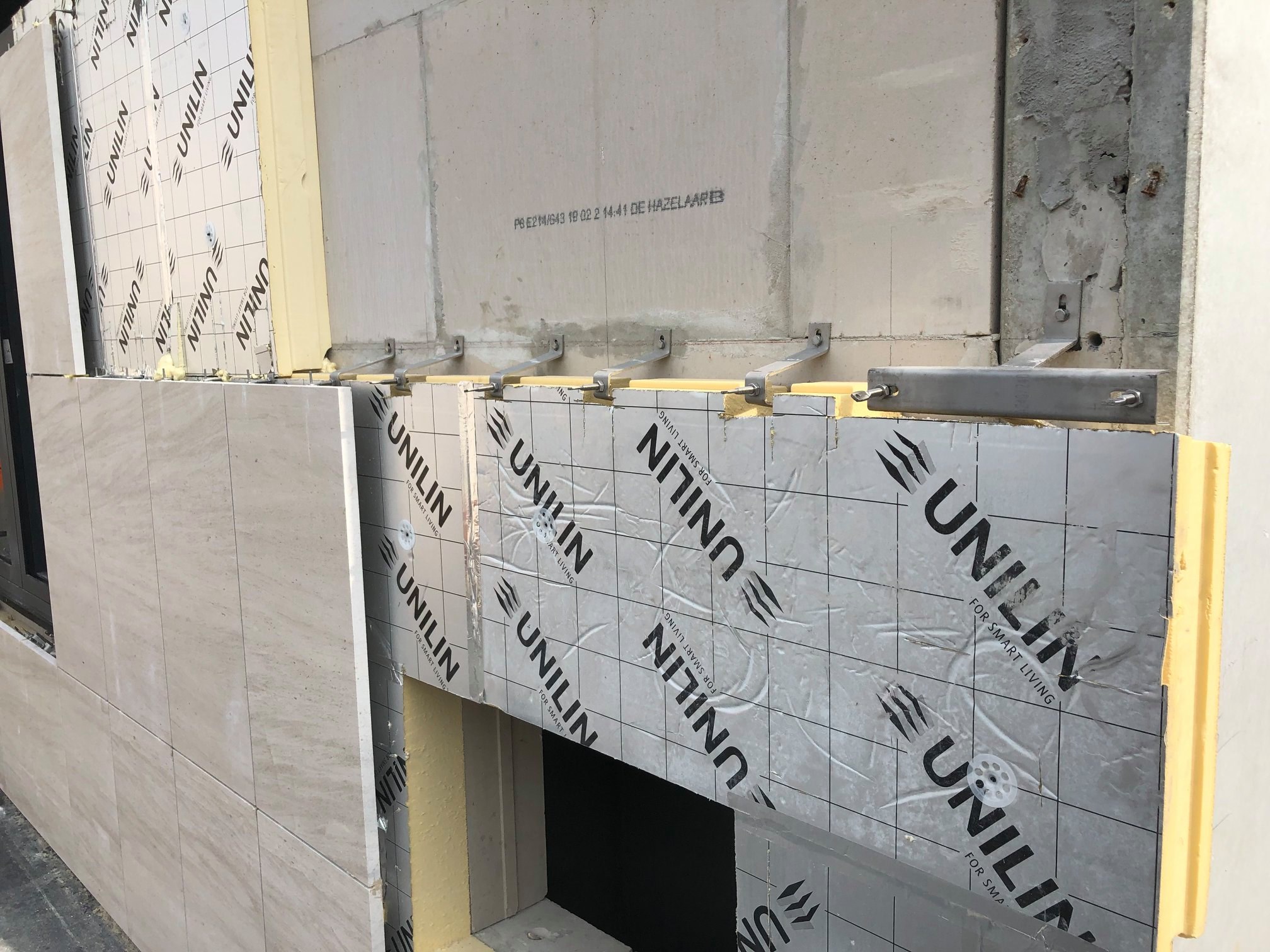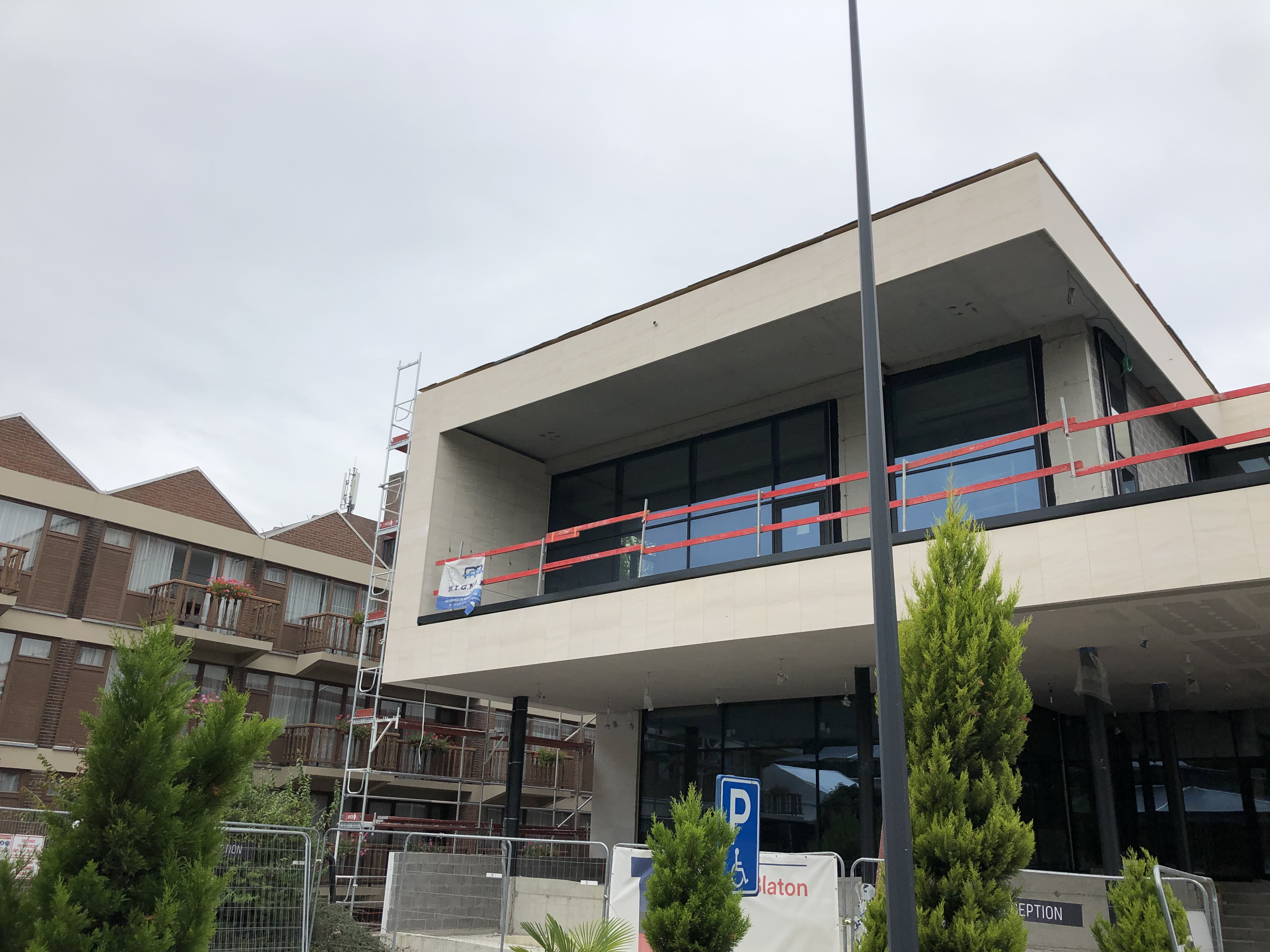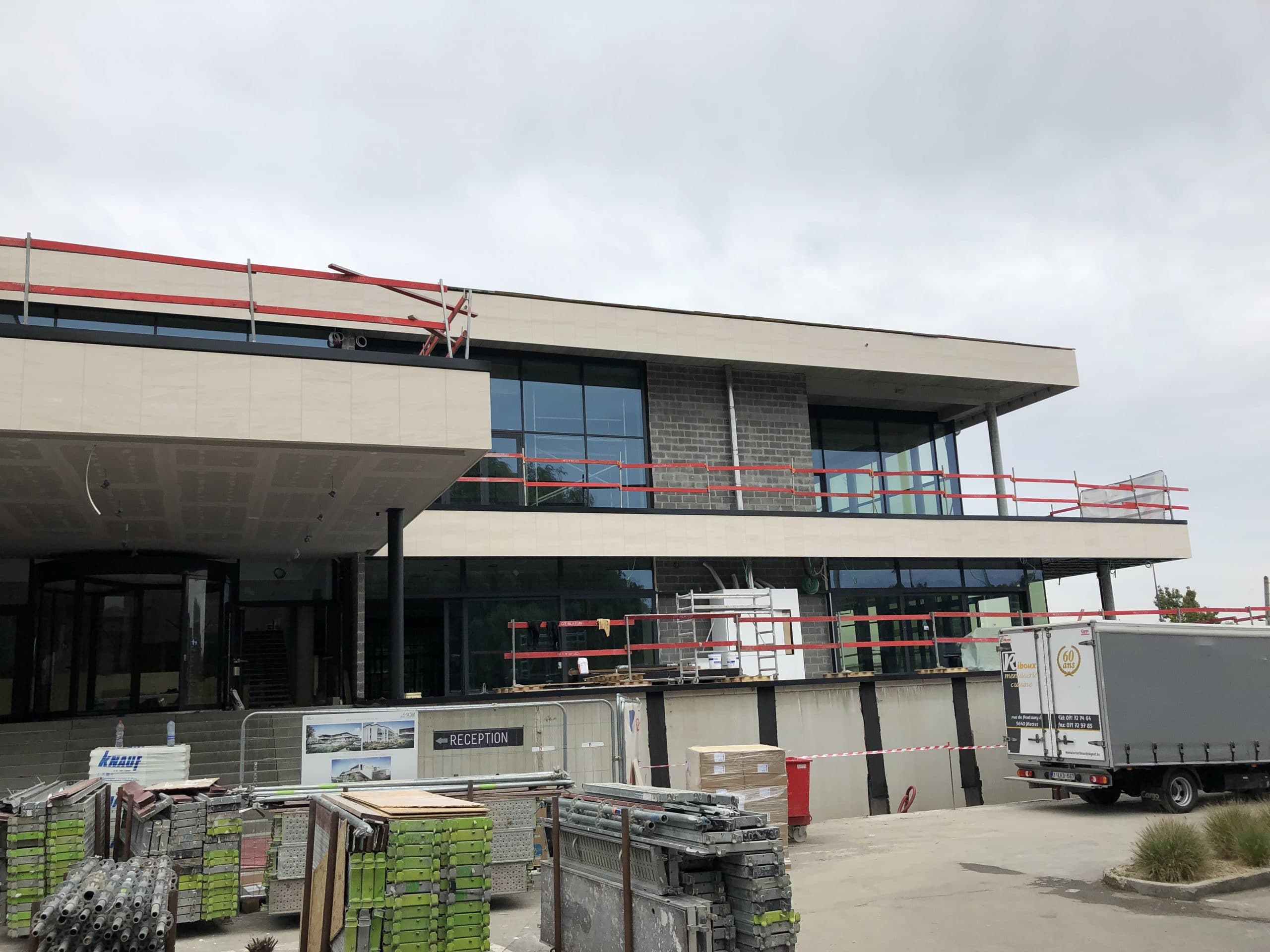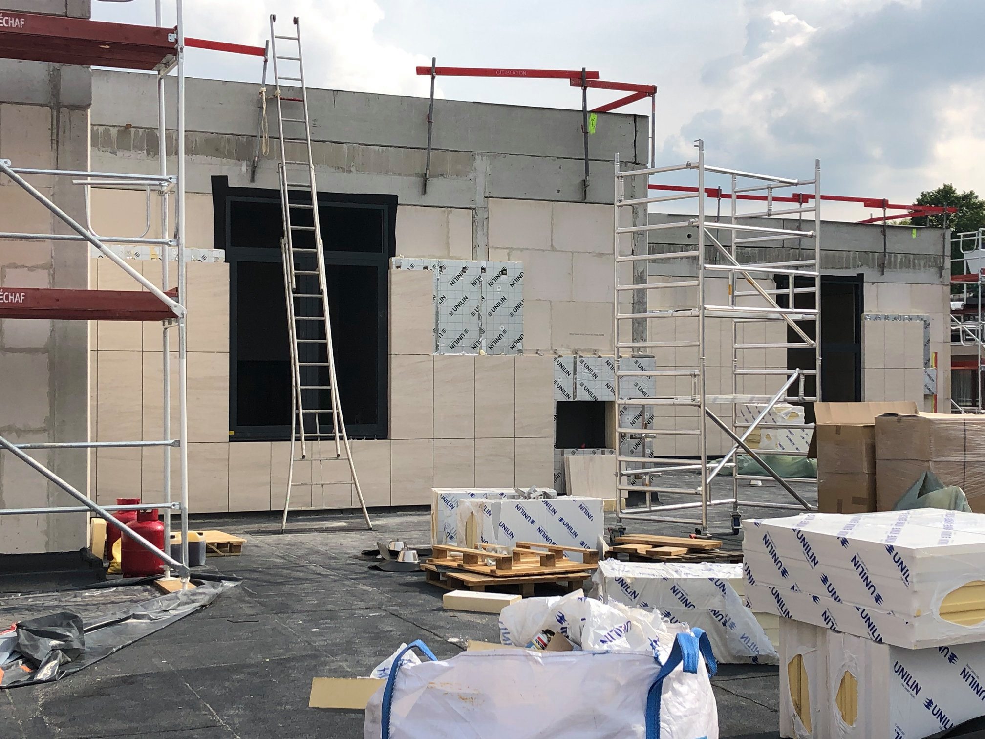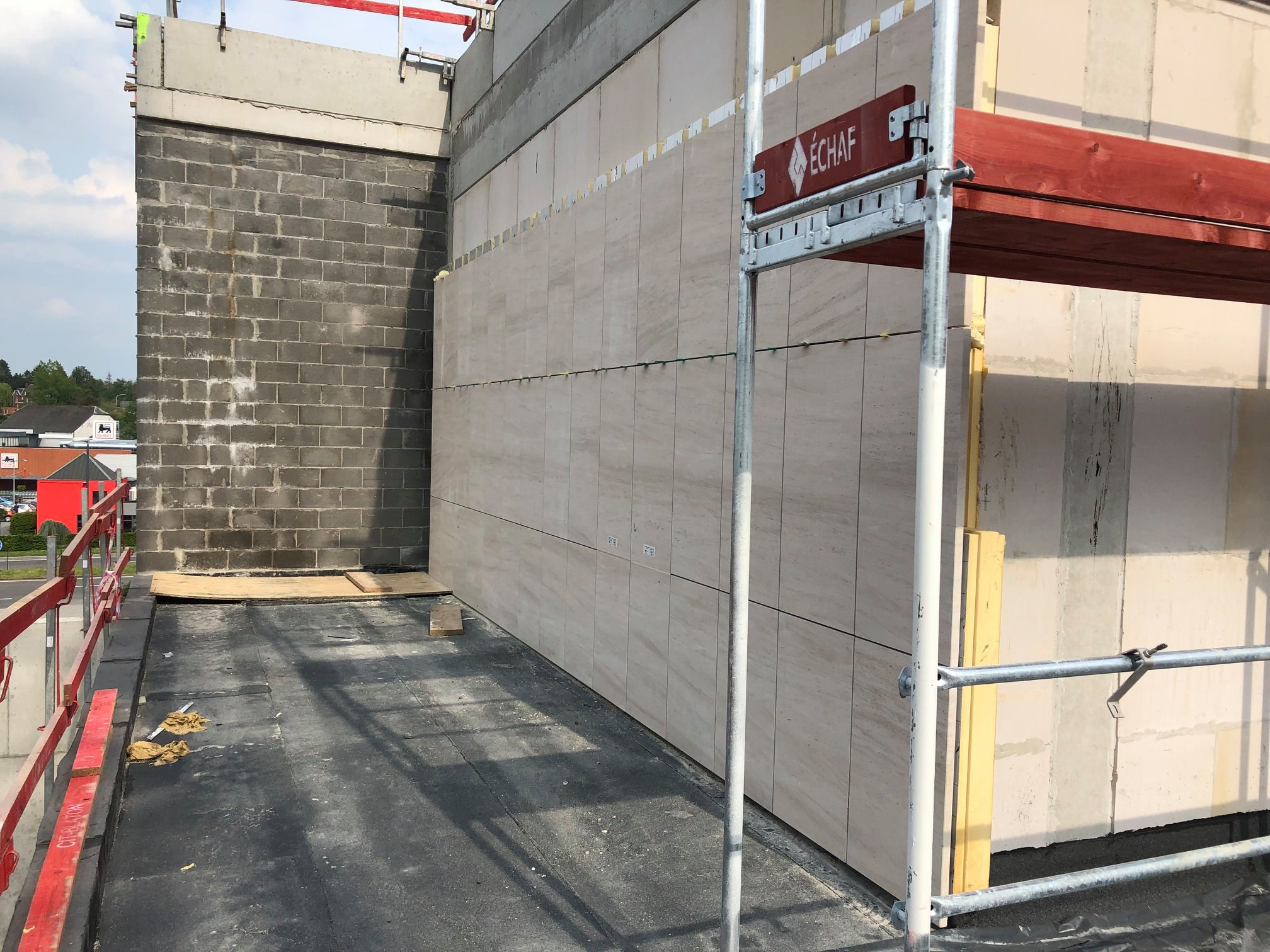 Façades en pierre calcaire type Moca crème à grains moyens à contrepasse d’ép. 3cm en finition adoucie.