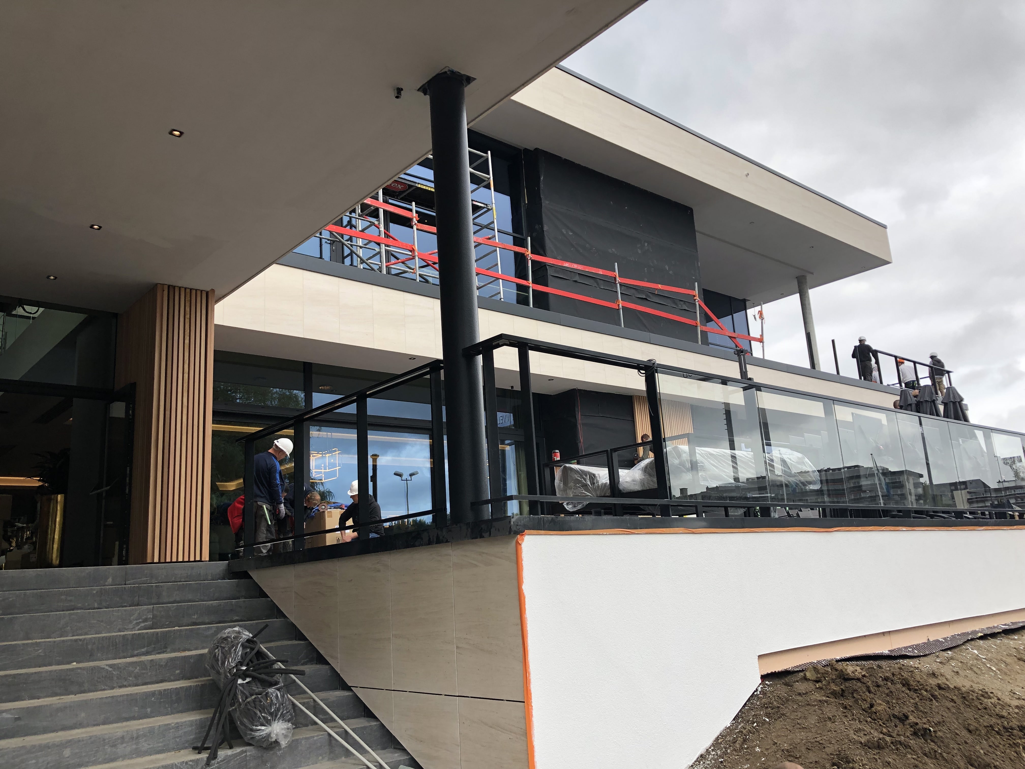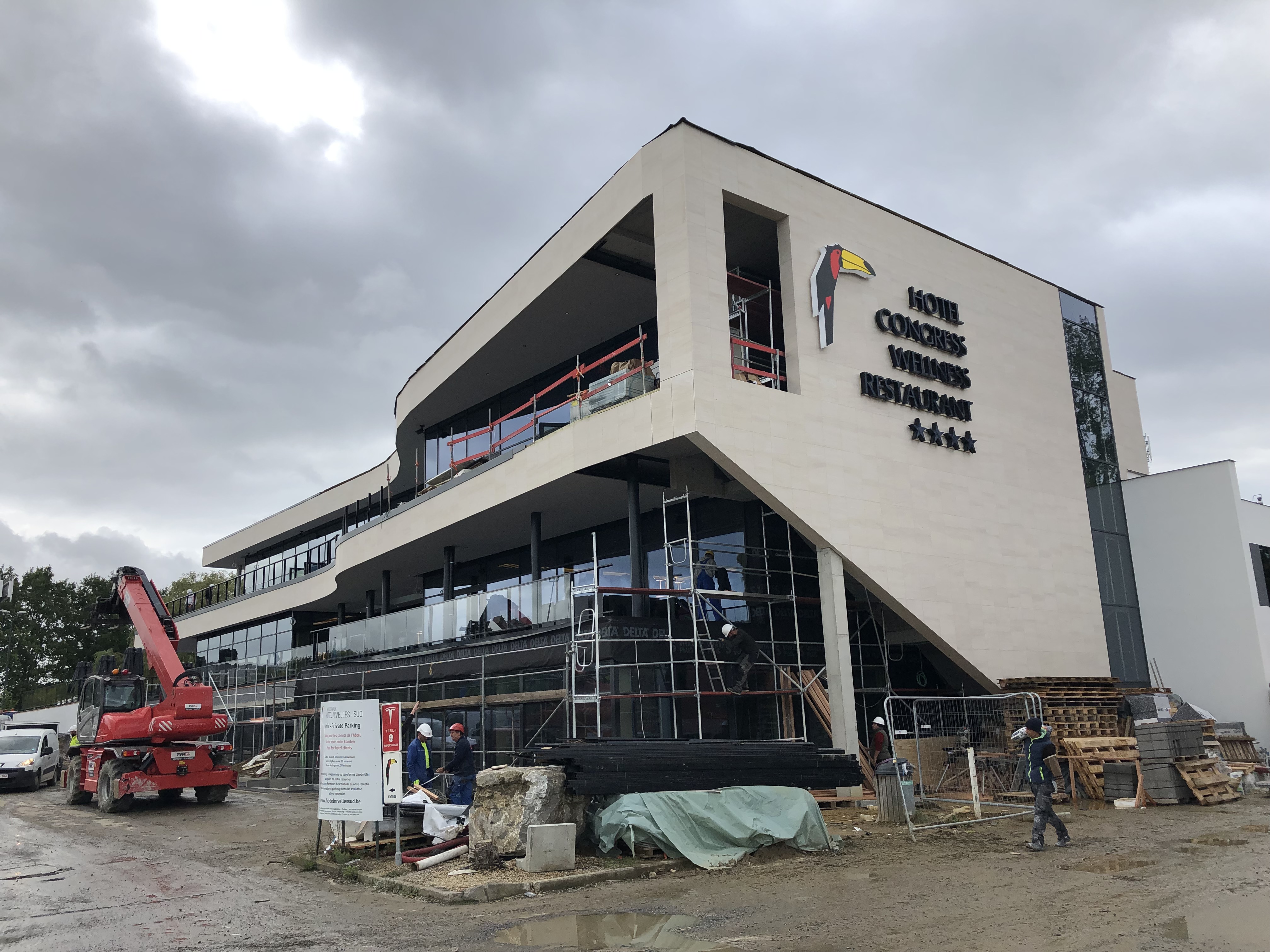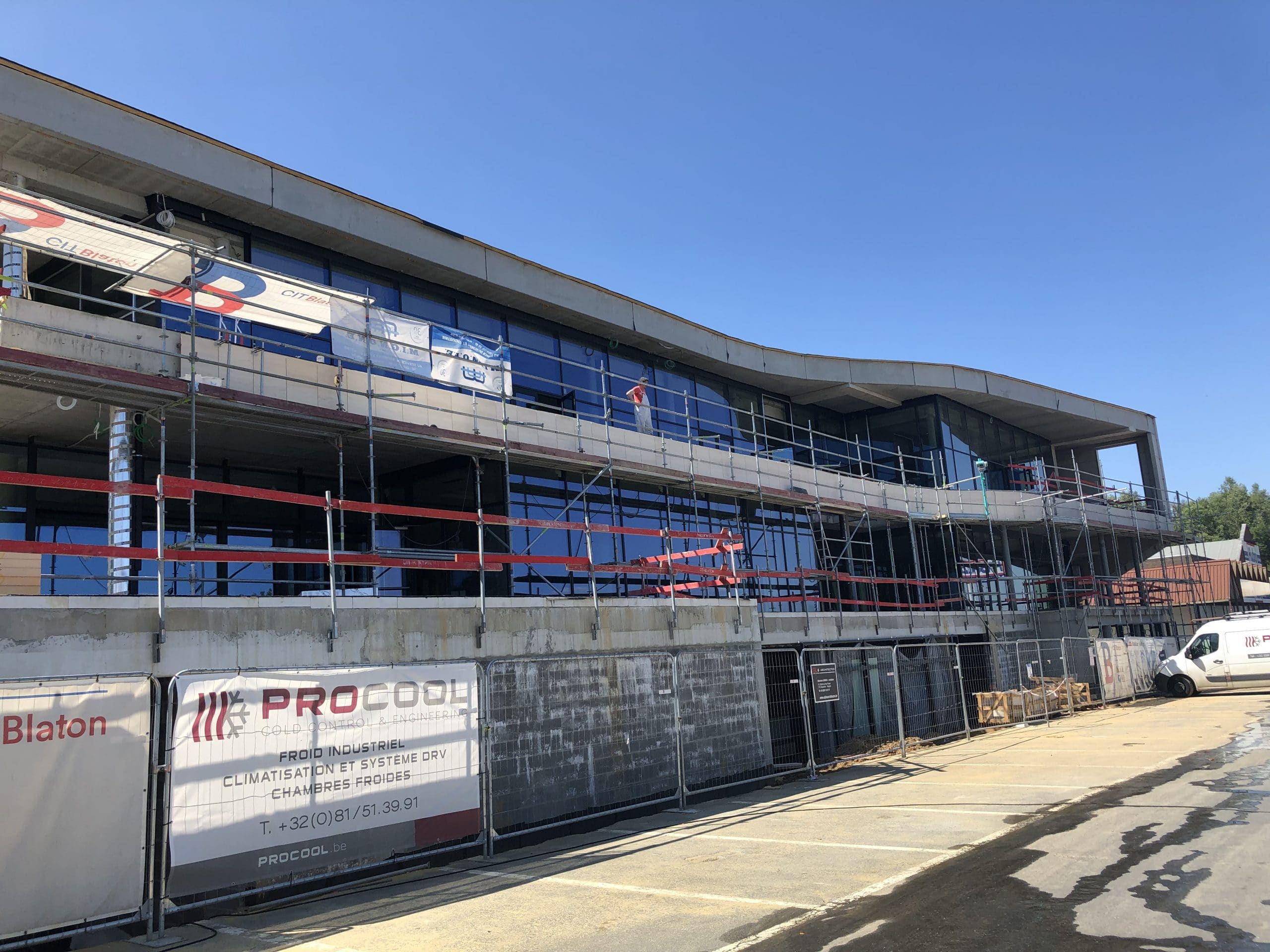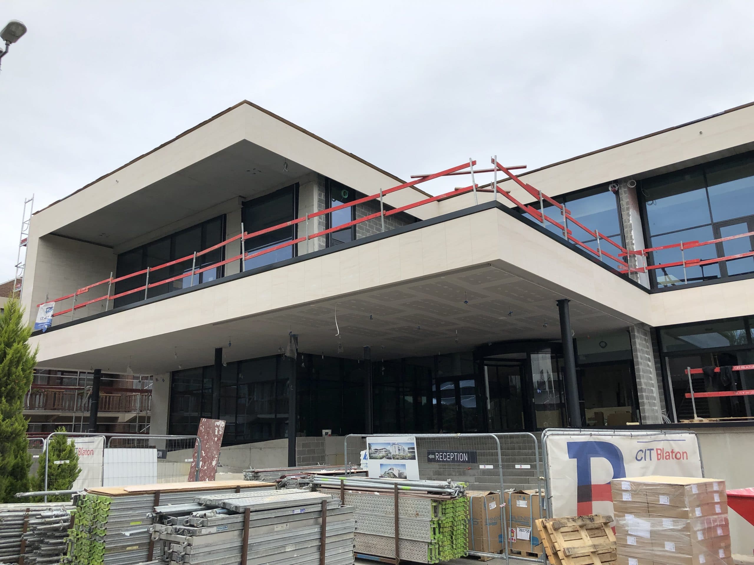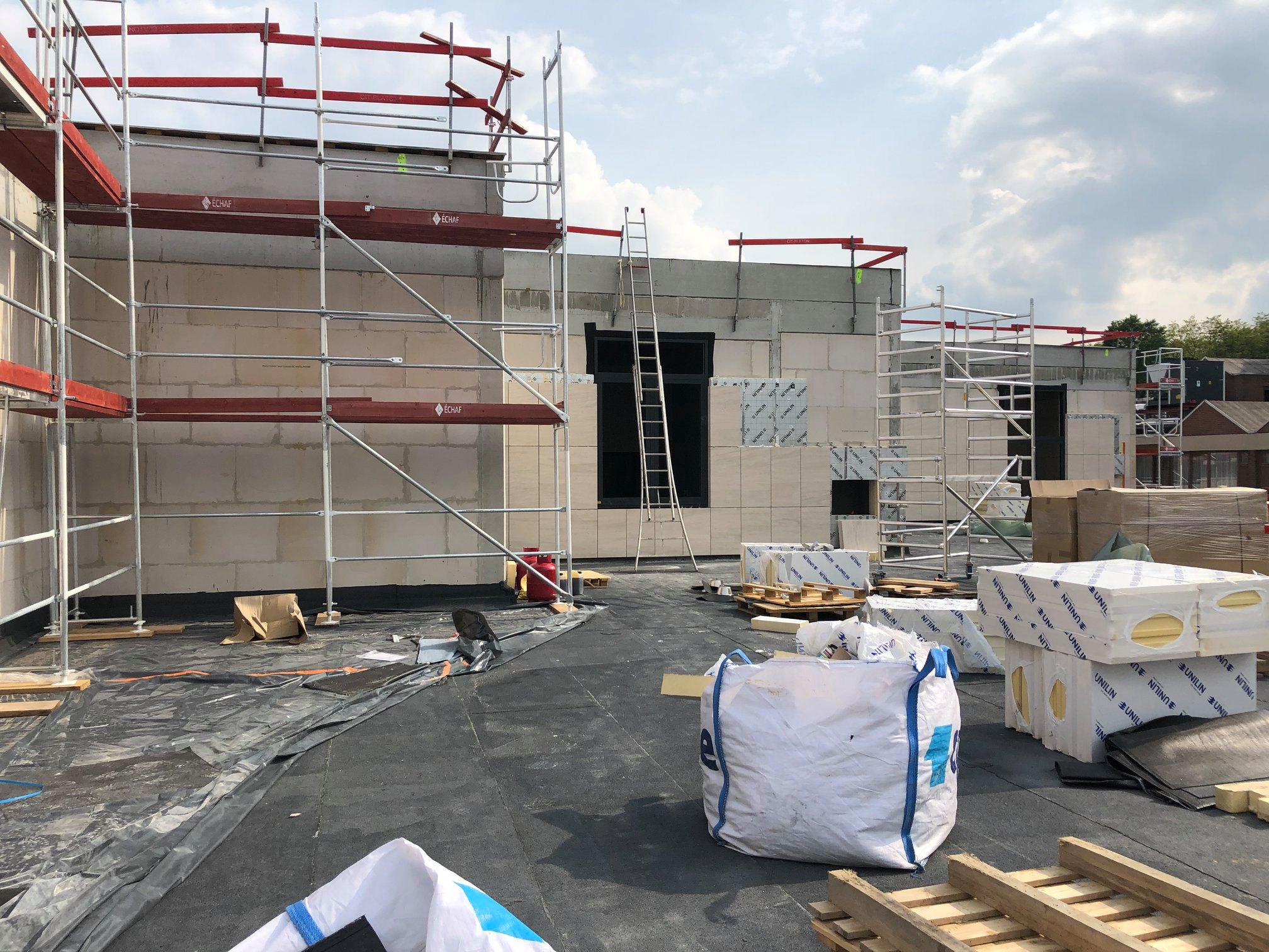 Façades en pierre calcaire type Moca crème à grains moyens à contrepasse d’ép. 3cm en finition adoucie.